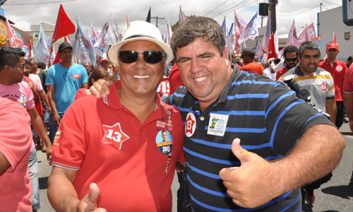 O prefeiturável esteve ao lado da candidata a vice, Sidélia Porto, além do governador do estado, Rui Costa (PT), o prefeito Guilherme Menezes (PT), os deputados federais Waldenor Pereira (PT) e Jorge Solla (PT), militantes, candidatos a vereador e correligionários.