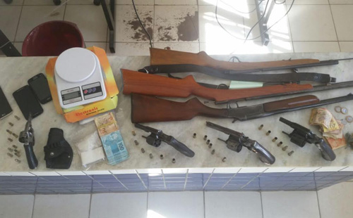 Foram apreendidas armas, balança de precisão e quase R$12 mil.