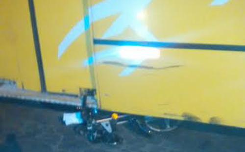 Uma moto foi parar debaixo do ônibus da Viação Vitória. A colisão chamou a atenção de quem passava pelo local.