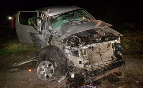 O carro em que dirigia descontrolou em uma ultrapassagem e acabou colidindo na lateral da carreta que vinha em sua frente e em outra carreta que vinha atrás. O carro acabou no acostamento da estrada, mas não tombou ou capotou.