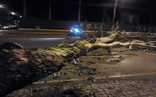 Um árvore caiu e travou o trânsito na Avenida Juracy Magalhães, em Vitória da Conquista, na noite desta sexta-feira (28).