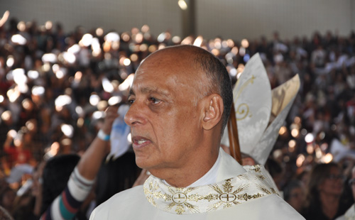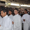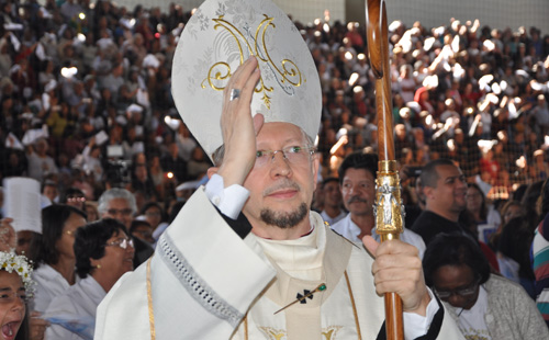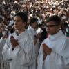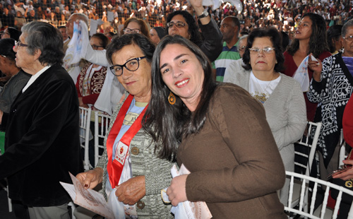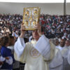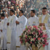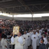 Logo depois da missa, os fiéis seguem em procissão até a Catedral, na Praça Tancredo Neves.