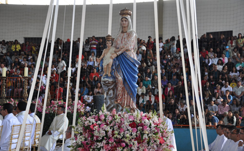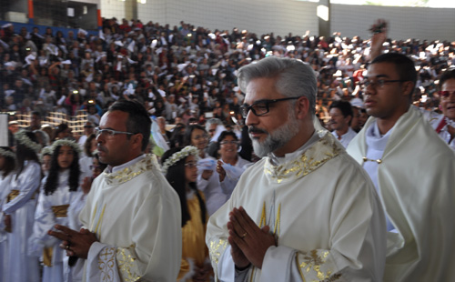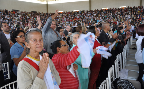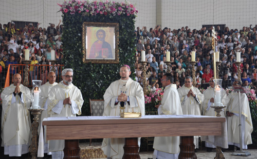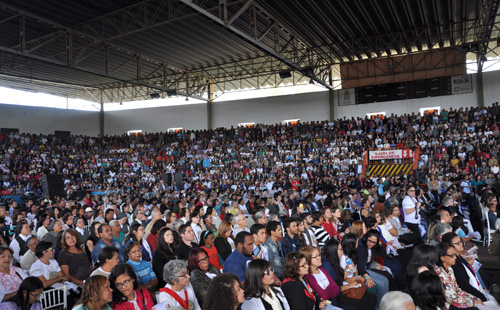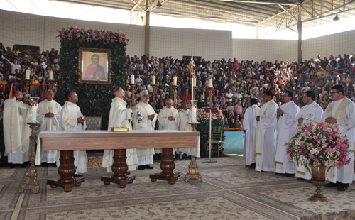 Milhares de conquistenses lotam o ginásio de esportes em louvor a Nossa Senhora das Vitórias; veja as fotos