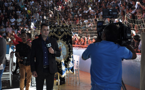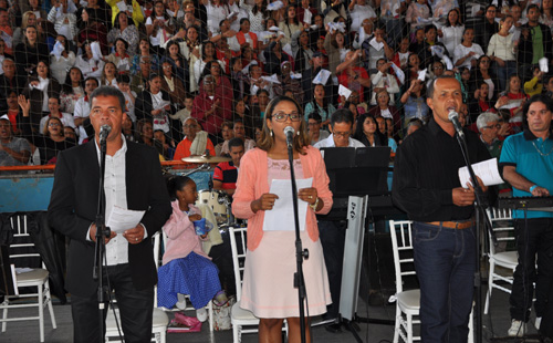 Milhares de conquistenses lotaram o ginásio de esportes Raul Ferraz na tarde de hoje (15) acompanhando a missa festiva que marcou o encerramento dos festejos a padroeira da cidade, Nossa Senhora das Vitórias.