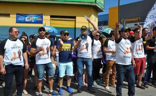 Com camisas e faixas, os apoiadores gritavam ‘Bolsonaro Presidente’, chamando a atenção de quem passava pelo local.