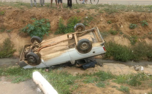 Conquista: Carro cai em valeta após motorista esquecer de ‘puxar’ o freio de mão