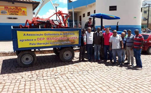Neste sábado (16/09), o deputado Marquinho Viana esteve na comunidade da Moitinha, comunidade quilombola de Barra da Estiva, juntamente a ex-prefeita e sua genitora, Dona Lúcia, e vereadores do município, para fazer a entrega de um trator agrícola ao presidente da Associação de Agricultores Familiares da Comunidade Remanescente do Quilombo de Moitinha, Renato, e à comunidade. O deputado e sua comitiva foram recebidos com muita festa.