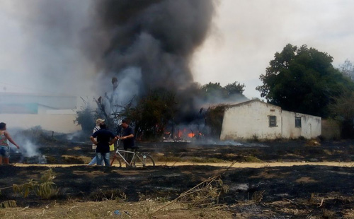 O fogo que tomou conta de um matagal acabou se alastrando e chegando próximo a residências, deixando moradores da localidade assustados.