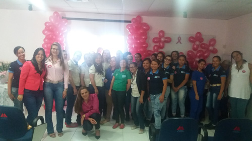 A enfermeira Leidiane ministrou uma palestra sobre Os Mitos e Verdades do Câncer de Mama, tirando dúvidas a respeito do tema e orientando as mulheres da empresa sobre a importância da prevenção e do compartilhamento das informações com amigas, vizinhas, familiares, e demais mulheres do convívio. As representantes da Unimed também realizaram sorteio de brindes com as participantes do evento e apresentaram uma entrevista, gravada em vídeo, na qual a médica cooperada da Unimed, Fernanda Trindade (CRM 16808), especialista em ginecologia e obstetrícia, explica um pouco sobre o câncer de mama e dá algumas dicas importantes para a prevenção da doença. Confira abaixo: