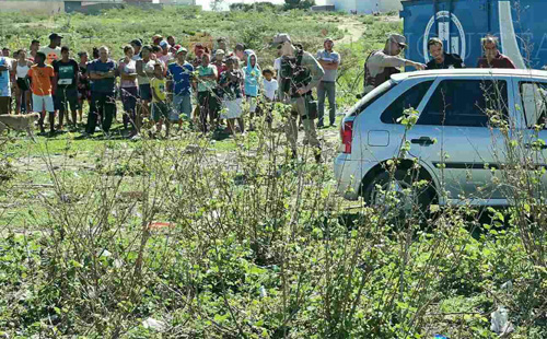 A polícia foi acionada para verificar a informação de um carro abandonado em um terreno baldio.