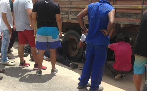 Conquista: Moto vai parar debaixo de caminhão em acidente no centro da cidade