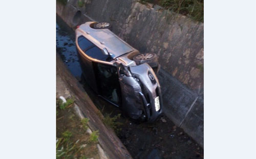 Conquista: Carro cai em valeta na Avenida Luís Eduardo Magalhães