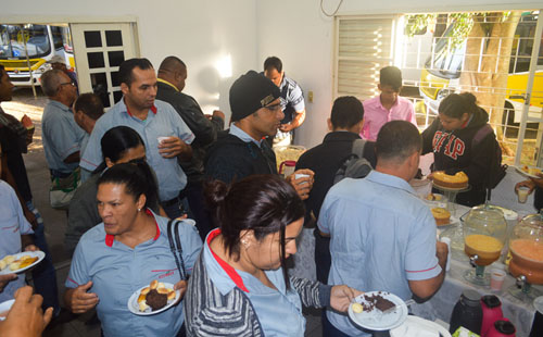 Um animado café de confraternização reuniu os colaboradores da Viação Vitória nas primeiras horas desta sexta-feira (15). Em seu discurso, o diretor Cláudio Vinícius ressaltou a determinação em continuar mobilizando todos os esforços para a superação das dificuldades e a importância da união do grupo. “O que tivemos em mente ao preparar essa reunião foi agradecer a cada um dos 520 funcionários pelo ano que nós tivemos. Passamos por dificuldades, ainda estamos passando, mas não podemos perder a motivação. Chega o final do ano e o espírito do Natal toma conta de todos, pois somos uma família”, explica Cláudio.