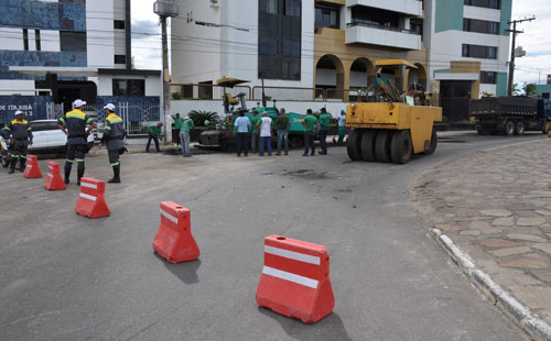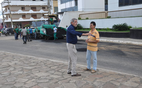 O início do chamado ‘banho de asfalto’ foi acompanhado de perto pelo prefeito Herzem Gusmão e o presidente da Empresa Municipal de Urbanização, Marcelo Guerra.