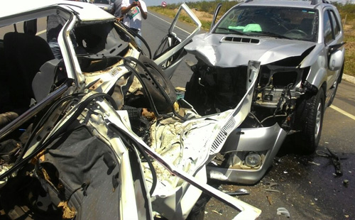 A PRF (Polícia Rodoviária Federal) informou que um dos veículos invadiu a pista contrária e bateu de frente com outro. A polícia não detalhou as circunstâncias do acidente e nem qual dos carros invadiu a contramão. Um dos veículos ficou destruído e a frente ficou totalmente retorcida.