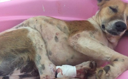 Passa bem a cadelinha que teve as patas cortadas com um facão, na zona rural de Jequié. A cachorrinha vira-lata, que é chamada de Pita, tem 06 anos de idade, e estava dormindo quando um homem, que não teve o nome divulgado, se aproximou de moto enquanto ela dormia e cortou as patas da cachorrinha, que por pouco não foram decepadas. O homem fugiu em seguida.