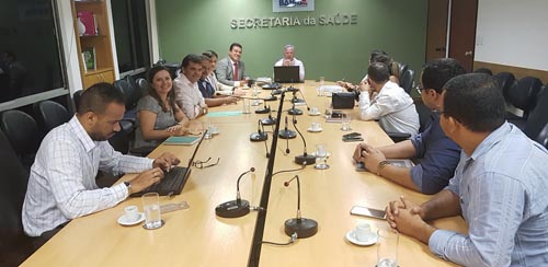 Para reivindicar melhorias nos sistemas se saúde dos municípios, o deputado Marquinho Viana (PSB), levou (em 03/04/18), os prefeitos: Haroldo (Ibicoara), Jones (Caraíbas), Lêda (Aracatu), Quinho (Belo Campo), Dico (Planalto); secretários municipais e Dr. Élvio, da Santa Casa de Vitória da Conquista, para uma audiência com o secretário Estadual da Saúde, Dr. Fábio Vilas Boas, que sempre o atendeu com muita prontidão e receptividade. Os gestores municipais saíram do encontro bastante satisfeitos.
