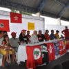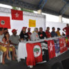 Durante os discursos, as lideranças fizeram falas contra a decisão da justiça que determinou a prisão do ex-presidente Lula.