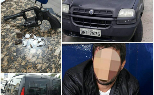 A guarnição conseguiu deter o indivíduo que estava com cocaína dentro do veículo. Em sua residência os policiais encontraram maconha, cocaína e um revolver calibre 38.