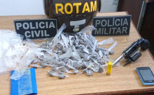 Na tarde de ontem (quarta-feira) a Polícia Civil de Barra do Choca, tomou conhecimento da existência de um possível ponto de tráfico de drogas, que, imediatamente prepostos da Polícia Civil, com o apoio da Polícia Militar e a Guarda municipal, deslocaram-se para o endereço, na Rua José Francisco, nº 54, bairro Nova Esperança. Com a chegada da força policial ao local, um jovem que se encontrava na casa, ao perceber a presença dos policiais, empreendeu fuga e, apesar dos esforços empregados, não foi localizado. No interior do imóvel foram encontrados 165 petecas de um erva semelhante ao entorpecente conhecido popularmente como MACONHA, inúmeras embalagens plásticas para acondicionar a referida substância; uma (01) arma de fogo (revólver, calibre .38) e uma munição calibre 20. A policia posteriormente identificou o evadido como sendo um adolescente morador das proximidades, a mãe do adolescente foi localizada e instada a apresentá-lo na Delegacia.