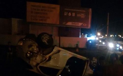 Conquista: Carro capota em acidente na Avenida Luís Eduardo Magalhães
