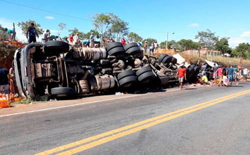 Na manhã desta sexta -feira (01), por volta das 10h, uma carreta carregada com refrigerante capotou na BR-030, trecho entre os municípios de Caetité e Brumado. Informações passadas a reportagem do site Sudoeste Bahia indicam que o motorista perdeu o controle da direção do veículo, o qual capotou posteriormente. Mesmo com a gravidade do acidente, o motorista teve apenas ferimentos leves. A carga foi saqueada por populares e também, segundo informações de testemunhas, por vários proprietários de estabelecimentos comerciais de Caetité. Mesmo que a carga seja segurada, cabe lembrar que este tipo de ação configura-se como furto. Policias militares da 94ª Companhia Independente de Polícia Militar (CIPM/Caetité), estiveram no local para realizar os procedimentos necessários até a chegada da Polícia Rodoviária Estadual (PRE). Fonte: Sudoeste Bahia.