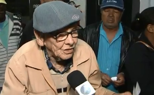 Seu José tem 80 anos, é hipertenso e cardíaco, precisou até de um banquinho para poder aguentar tanta demora: “Cardíaco, hipertenso, tudo isso eu sou. E tô aqui na fila pra poder pagar a conta de luz”.