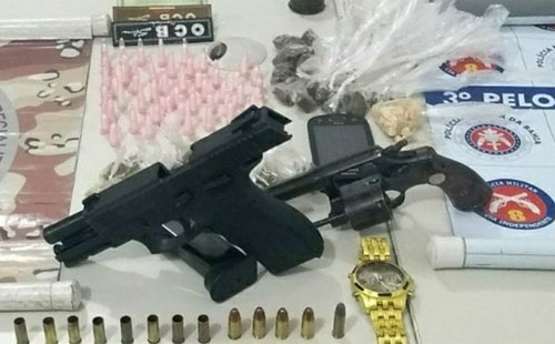 Na residência, além das armas e munições utilizadas pelos indivíduos, foram encontrados ainda 49 pinos de substância análoga à cocaína, 30 trouxinhas de substância análoga à maconha, 20 gramas de substância análoga à crack, 01 celular Samsumg e 01 Relógio marca Potenzia, sendo todo material apreendido e apresentado na Delegacia de Itapetinga, onde foi lavrada a ocorrência.