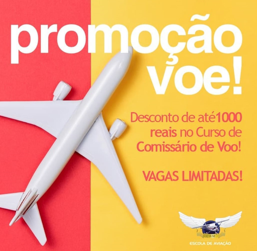 A Voe CRM é uma escola de aviação em Vitória da Conquista que tem cursos de Piloto, Agente de Aeroporto e Comissário de Voo para Ensino Médio. Todos os cursos estão com matrículas abertas e o de Comissário está com um ótimo desconto.
