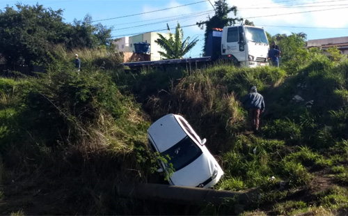 O motorista de um carro de passeio perdeu o controle do veículo e desceu a ribanceira no prolongamento da Avenida Presidente Vargas, em Vitoria da Conquista, conhecida popularmente como ‘Estrada da Barra’.