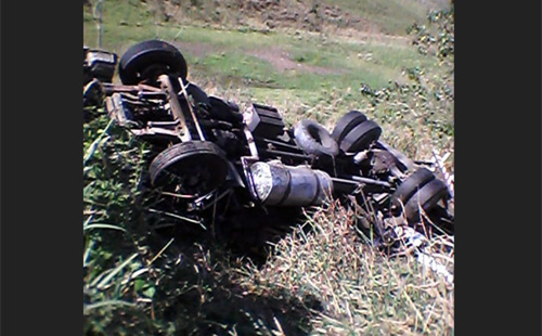 A vítima, que não teve o nome revelado, sofreu um grave acidente. O caminhão ficou destruído. Por sorte, o condutor saiu ileso.