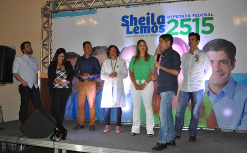 Durante o lançamento da sua candidatura, Sheila também contou com o discurso de apoio do candidato ao governo do estado pelo seu partido, o ex-prefeito de Feira de Santana, José Ronaldo.