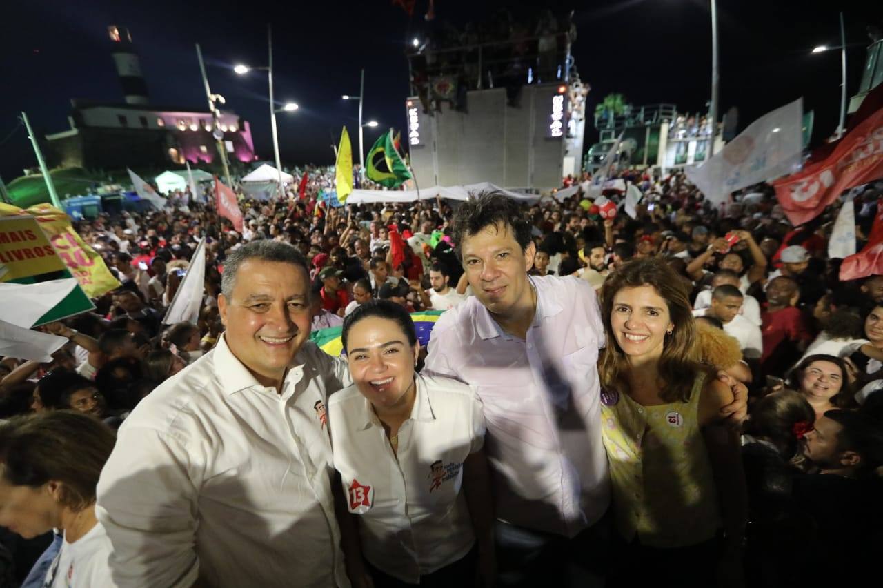 O ato, que começou no final da tarde em Ondina, contou com as presenças de Haddad, Gleisi Hoffmann, Jaques Wagner, João Leão e do próprio governador Rui Costa (PT), que convocou o evento.