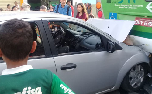 Um veículo de passeio colidiu na traseira do ônibus da Cidade Verde.