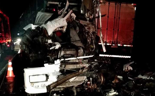 O motorista de um caminhão-cegonha morreu após bater de frente contra uma carreta durante uma ultrapassagem indevida na BR-116, na altura de Vitória da Conquista na noite de quinta-feira (8).