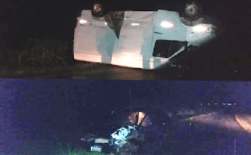 Um acidente foi registrado na noite do último sábado (08), por volta das 21h40min na BA-152, local conhecido como ”Curva da Orta” em Livramento de Nossa Senhora, na Chapada Diamantina, os veículos envolvidos, uma Van Sprinter de cor Branca placa BSV-9558, licenciamento de Vitória da Conquista/BA, conduzida por Jackson Andrade Freitas, colidiu com o Fiat Uno de cor verde, placa JMD-0785, licenciamento de Paramirim/BA, conduzido por Manoel José de Albuquerque, com o impacto da colisão a Sprinter acabou capotando. As vítimas sofreram ferimentos leves e foram socorridas pela equipe do SAMU 192, e encaminhadas para UPA 24H, sendo liberadas em seguida. A Policia Militar esteve no local prestando assistência, controlando o transito e desobstruindo a via. Os veículos envolvidos na colisão foram recolhidos para o Posto da PRE de Brumado. (Foto/arte: Vinny Publicidade e informações Ba Hoje).