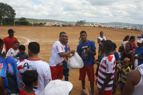 A partida beneficente entre Amigos de Binho e Amigos de Nem terminou em 1 a 1, mas o resultado pouco importou. O mais legal foi o fim do jogo. Mais de 140 famílias foram beneficiadas com a distribuição de cestas básicas para pessoas carentes do bairro. Uma ceia de natal diferente e alegre.