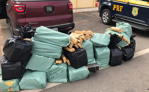 Em mais uma abordagem, rotineira no na BR 116, trecho de de Vitória da Conquista , a tropa de elite da Polícia Rodoviária Federal, após abordagem ao veículo modelo Fiat Toro(carro esse diga-se de passagem,é fruto de roubo),os policiais conseguiram aprender quase uma tonelada de maconha.