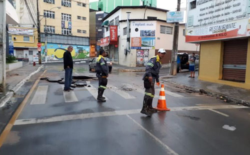 Já na avenida Siqueira Campos, a chuva danificou o asfalto no entorno do esgotamento. O trecho foi sinalizado e será recuperado.