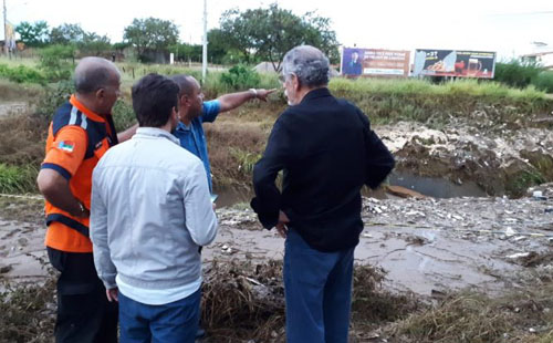 O prefeito Herzem Gusmão, após cessar a chuva, visitou os pontos mais críticos na cidade e convocou diversos secretários para iniciar os trabalhos de desobstrução de vias e limpezas de canais para o escoamento da água das chuvas.