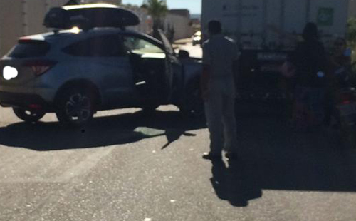 Um acidente de pequena proporção foi registrado na manhã de hoje (terça-feira), no Bairro Jardim Guanabara, em frente a um condomínio residencial, nas proximidades do Shopping Conquista Sul.