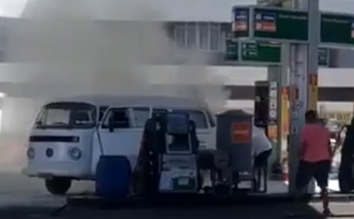 Uma kombi que estava no local começou a sair fumaça, deixando funcionários e pessoas que estavam no local amedrontadas.