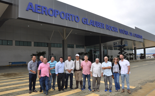 O deputado estadual Jean Fabrício Falcão (PC do B) visitou o novo aeroporto de Vitória da Conquista na manhã de hoje (quinta-feira) ao lado de diversas lideranças, dentre elas Denison de Oliveira, diretor de Terminais e Aeroportos da Secretaria de Infraestrutura do Estado da Bahia (Seinfra);vereador e ex-presidente da Câmara, Herminio Oliveira; o comandante da Polícia Rodoviária Estadual na região, Major Selmo; Célio Barbosa, representando o Conselho de Segurança; os ex-vereadores Juvêncio Amaral, Ricardo Babão e Andreson Ribeiro, dentre tantos outros.