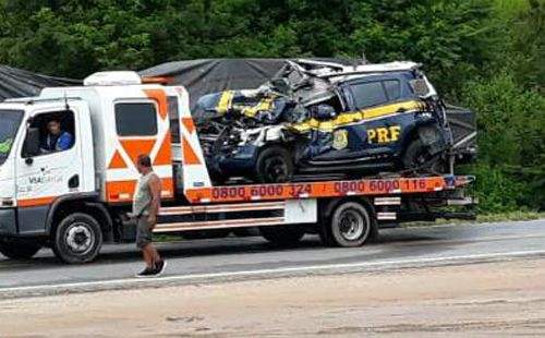 Uma viatura da Polícia Rodoviária Federal (PRF) ficou destruída após se envolver em acidente na BR-116, próximo ao município de Cândido Sales, distante cerca de 80 km de Vitória da Conquista.