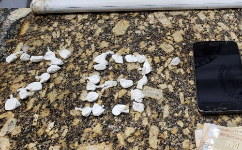 Por volta das 21h30 de ontem (sexta-feira) a 78ª Companhia Independente de Polícia, em rondas ostensivas na Rua E, Nossa Senhora Aparecida, mediante suspeita, abordou um homem em via pública, posteriormente identificado como um jovem de 20 anos, sendo encontrado com o mesmo 2 porções de substância análoga à cocaína e a quantia de R$ 150 em espécie. Segundo a polícia, o suspeito informou que encontrava-se comercializando naquela localidade, assim como era contumaz vender drogas em bares bares da zona Oeste e que na sua residência próxima àquele local havia mais drogas. Chegando ao local informado foi localizado mais 27 porções da mesma droga na posse outro suspeito. Diante dos fatos os envolvidos juntamente com o material apreendido foram apresentados no DISEP para tomada das medidas cabíveis, onde foi constatado que um deles possui registros policiais por tráfico de drogas.