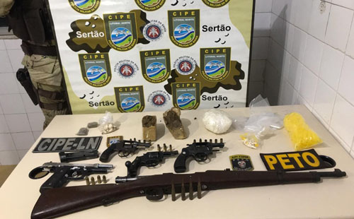 De acordo com a SSP, também foram apreendidos carregadores, munições, dois tabletes de maconha e porções de cocaína. O caso foi registrado na delegacia de Cruz das Almas.
