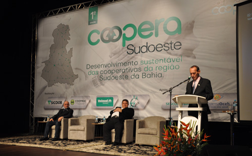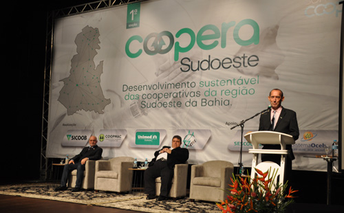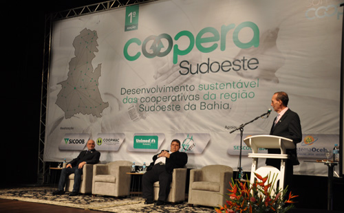 Começou oficialmente na noite de hoje (quarta-feira), no Centro de Cultura Camilo de Jesus Lima, em Conquista, a 1º edição do Coopera Sudoeste, que segue até amanhã (18), idealizado pelas cooperativas COOPMAC e SICOOB, em parceria com a CTES e UNIMED Sudoeste, apoio do Sescoop/BA e do Sistema OCEB. Com o objetivo de discutir temas relacionados ao desenvolvimento sustentável das cooperativas, gestão e governança e intercooperação, o sudoeste baiano recebe figuras importantes do cenário cooperativista e de destaque nacional, entre eles o Presidente da Organização das Cooperativas do Brasil, Márcio Freitas.