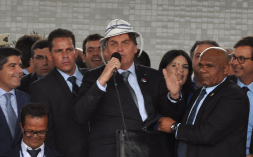 O presidente Jair Bolsonaro chegou por volta de 10h45, direto para o ato solene, com toda a comitiva.