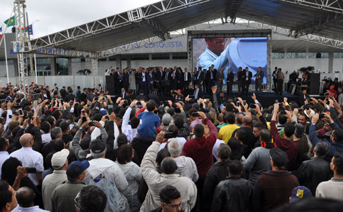 Logo após o ato, o presidente se deslocou para o lado de fora, onde aconteceu a saudação para o público que compareceu.