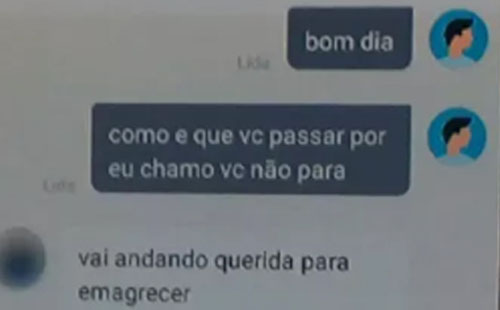 “Como você passa por mim, eu chamo e você não para?”, perguntou. “Vai andando, querida, para emagrecer”, respondeu o motorista. Em seguida, a passageira informou que prestaria uma queixa.